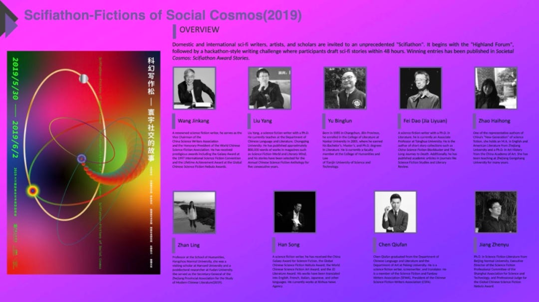 有时候,我们也发起创意写作松,以及,如 Scifiathon(科幻松)。把很多优秀的年轻的作家”关”在一起48小时,然后”强迫”写出故事。