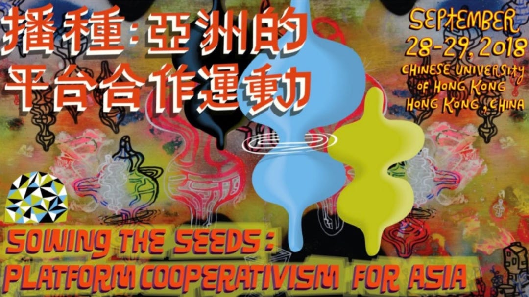 然后再隔一年我们又在5个城市,举办了七场合作松的会议,。我们在杭州、台北、高雄、香港、武汉等地方举办了七场合作松会议,每场参与的合作社有十几个。大概全亚洲有70多个合作社参加这个计划。为什么要做这个事情?是我们想具体知道合作社需要什么东西,以至于我们的程序员,设计师,艺术家可以帮助社区实际开发与完成她们所需。做完合作松会议后,与港大的邱林川老师合作,带着国内的南塘合作社与台湾的主妇联盟参与了香港中文大学举办的,第一次亚洲平台合作主义大会(PCC),同时也将之前合作松会议的成果带到了大会中,完成一场两天一夜,48小时的合作松开发会议。我那时候带了非常多的中国的合作社跟农民到香港参加PPC大会,让更多人知道中国有非常多草根的、强有力的由村民组织的合作社团体。